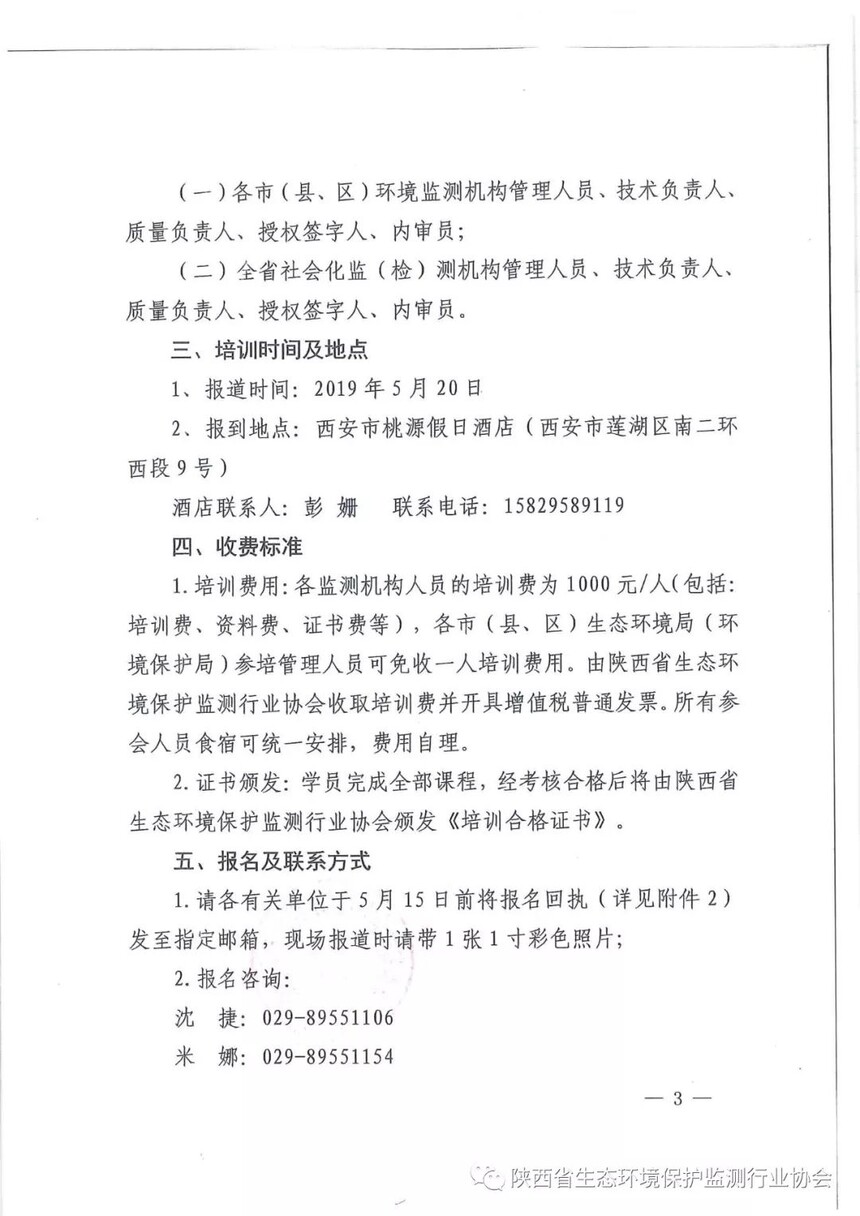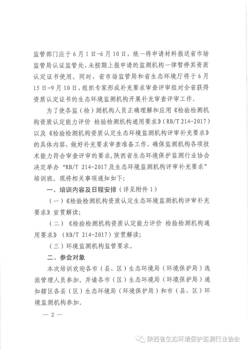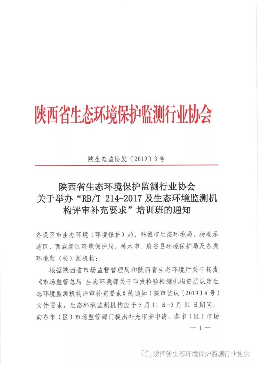 陕西省生态环境保护监测行业协会关于举办“RB T 214-2017 及生态环境监测机构评审补充要求”培训班的通知